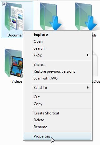 Щелкните правой кнопкой мыши на папку, которую нужно переместить, и выберите Свойства .