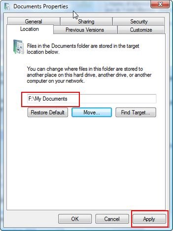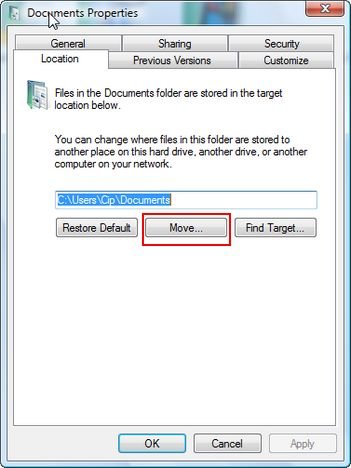 Примечание: рекомендуется перемещать папки пользователя сразу после установки Windows Vista. Если вы делаете это после того, как установлено много приложений и вы их долго использовали, вы можете иметь некоторые проблемы, так как некоторые ссылки останутся на старом месте папки пользователя. Эти ссылки могут вызвать проблемы с работой некоторых приложений должным образом, и вам придется их переустанавливать.