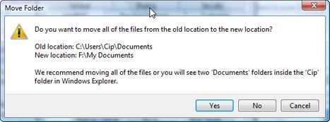 Теперь вам будет предложено, если вы хотите переместить все файлы из текущего местоположения в новое. В случае, если у вас нет никаких файлов в старом месте, вы можете нажать на Нет .