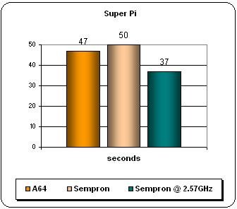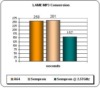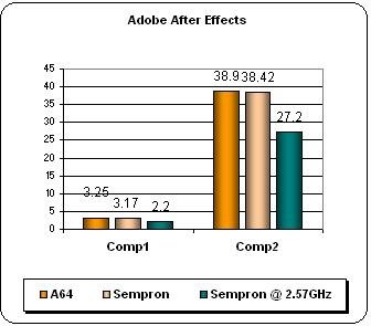 Есть две части этого теста. Первый — расчёт в основном на базе процессора, а второй — на какую систему он более ориентирован. Разогнанный Sempron абсолютно убивает в этом тесте. Время-деньги, так и в профессиональных приложениях, где рабочий процесс получения сделан как можно быстрее, очень важно, тактовая частота имеет значение. Первый тест показывает полное соотношение 1:1 — для каждого % который  добавляется к тактовой частоте, время падает на тот же объем. Во втором тесте меньше зависимости от мощности процессора, но это все ещё ​​довольно заметный разрыв.