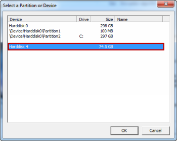 В зависимости от настройки вашего компьютера, в диалоговое окно может отличаться. На этом этапе вы собираетесь выбрать жесткий диск, который вы хотите зашифровать. Все физические жесткие диски обозначаются так  — жёсткий диск X , X представляет идентификационный номер жесткого диска (если у вас удалить существующие разделы на вашем жестком диске ранее, X будет таким же, какой и номер жесткого диска, который был определён ранее в этом учебнике). Жесткий диск X, как правило, зарезервирован для вашей операционной системы , содержащий C: раздел. Если у вас несколько жестких дисков в компьютере, вам может потребоваться, чтобы посмотреть на колонку «Размер» и определить правильный жесткий диск. Если на жёстком диске ,который вы собираетесь шифровать уже есть раздел, вы можете также использовать колонку «Drive» , чтобы правильно определить правильный жесткий диск. При выборе устройства из списка, убедитесь, что вы выбераете объект идентифицированный как жёсткий диск X. Как только вы выбрали жесткий диск, нажмите кнопку «ОК».