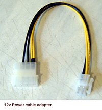 Большинство материнских плат купленных сегодня требуют дополнительного питания от 12В , для питания процессора с выделенной мощностью. Эти кабели, как правило, черный и желтый и имеют четырех контактный разъем, который вставляется в плату от основного разъема питания ATX. Убедитесь, что ваш блок питания имеет один из этих кабелей, потому что в противном случае нужно будет потратиться на четырёх контактный кабель питания устройства с кабель-переходником.