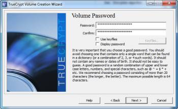Если вы решите использовать ключевой файл, убедитесь, что у вас есть несколько файлов для проверки , подлинные копии файлов доступны в нескольких местах. Если вы не хотите, чтобы выбирать свой собственный файл в качестве ключевого файла, TrueCrypt может создать ключевой файл для вас,доступ к нему из главного меню Keyfiles>Генерация случайных Keyfile . После того как вы создали свой пароль, нажмите кнопку «Далее».