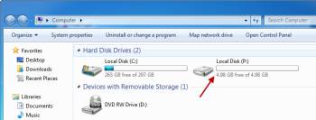 Теперь, если вы открываете компьютер (или Windows Explorer), вы увидите, том установлен в соответствии с буквой диска ,которую вы выбрали ранее. Теперь вы можете использовать этот диск, как и любой другой жесткий диск, подключенный к компьютеру. Идем дальше и скопируем некоторые файлы большого тома, чтобы вы могли видеть, что он работает как обычный жесткий диск.