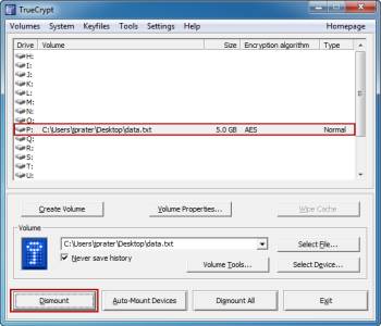 Когда вы закончите работать с томом, откройте TrueCrypt, выберите том в списке и нажмите кнопку «Отключить».