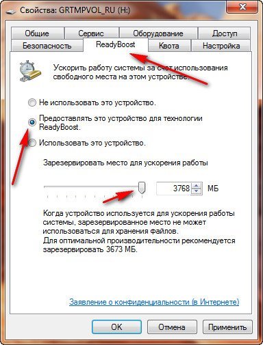 Выбираем ReadyBoost.
