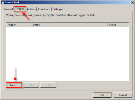 В  вкладке Triggers нажмите кнопку  Новые .