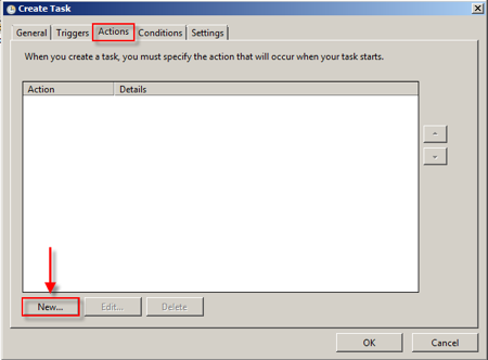 Далее укажите действия, которые вы хотите начинать  вызывать как Целевая . Перейдите кДействия и щелкните на кнопку Новые .