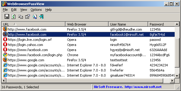 Если вы не можете вспомнить пароль от вашей учетной записи facebook, есть ещё шанс, при помощи которого вы легко можете восстановить утерянный пароль, пока этот пароль хранится на вашем компьютере в веб-браузере,который вы используете. Вы можете попробовать восстановить ваш пароль от facebook с помощью утилиты WebBrowserPassView. Эта утилита может восстановить пароль в 4 различных веб-браузерах — Internet Explorer, Firefox, Opera и Google Chrome.