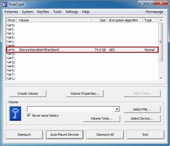 TrueCrypt определяет зашифрованный жесткий диск, используя тот же метод, как это он делает, когда определяет зашифрованные разделы. После ввода пароля тома (скрытый или стандартный), TrueCrypt проверяет заголовки всех доступных жестких дисков и разделов (в том числе не зашифрованного жесткого диска), и пытается смонтировать все имеющиеся тома. Этот процесс может занять значительное количество времени на медленном компьютере с большим количеством шифрованных томов, поэтому вам может понадобиться смонтировать тома вручную в зависимости от вашей системы.