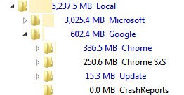 Папки Chrome, которые вы видите принадлежат версии Chrome Dev, которую я использую в системе, папка Chrome SxS версии Chrome Canary , что я установил недавно.Google, как вы можете видеть сохраняет копии старых версий браузера на диске. Это продолжалось с декабря 2010 года для версии Chrome Dev например. Не ясно, почему версии не удаляются после обновления. Даже если это для восстановительных целей, как правило, достаточно, чтобы держать одну или две из последних версий, а девять слишком много.