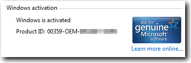Ранее я написал о ABR (Активация Резервного копирования и Восстановления) , который является возможностью резервного копирования и восстановления активации от Windows Vista и есть бета-версия, которая работает с Windows 7. Я лично проверил этот метод, и он прекрасно работает.Важное правило – нужно обязательно убедиться, что вы восстанавливаете Windows 7 OEM с активированной лицензией на ту же версию Windows 7. Например, мой компьютер Dell поставляется с Windows 7 Home Premium, я могу только восстановить её обратно на Windows 7 Home Premium. Если я попытаюсь восстановить лицензию  Home Premium на операционную систему  Windows 7 Ultimate, статус и Product ID покажут в системе “Не Доступен” .На рабочем столе в правом нижнем углу, также будет отображаться сообщение “Эта копия Windows не является подлинной”.