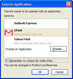 Теперь, если нажать Mailto: ссылку на боковой панели-Lifehacker в Firefox 3 будет спрашивать, какое приложение вы хотите использовать. Выберите Gmail и выберите «Сохранить выбранные настройки для электронной почты Ссылки», чтобы установить постоянные предпочтения.