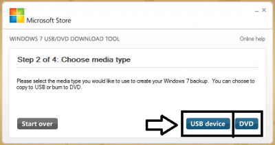 Вы получите два варианта на выбор либо USB или DVD, в этом случае вам нужно выбрать USB.