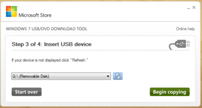 После выбора USB нажмите Begin copying — Начать копирование.