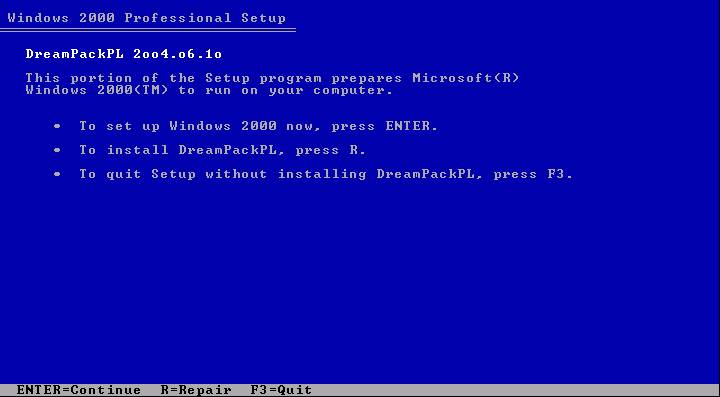 - Скачать DreamPackPL и создать загрузочный компакт-диск пропатченный или просто загрузите непосредственно правильно сделанный и пропатченный ISO образ (разархивируйте после загрузки).