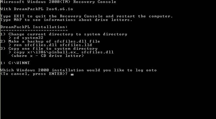 D: i386 pinball.ex_ C: Windows System32 sfcfiles.dll (для Windows XP)