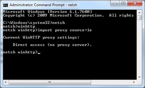 Введите [Netsh], или [WinHTTP] в командной строке, что бы экран выглядел потом так как на скриншоте ниже.