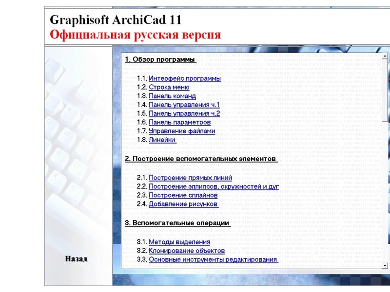 Archicad 11— это новые функции проектирования для архитекторов. Которые предоставят большую свободу творчества,сделают работу архитектора более  эффективной и помогут создать замечательные проекты. ArchiCAD 11 – лучший инструмент проектирования для самых разных архитектурных групп: и небольших мастерских, и отделов в рамках крупных проектных институтов.