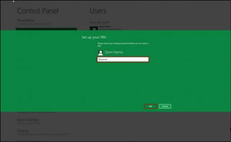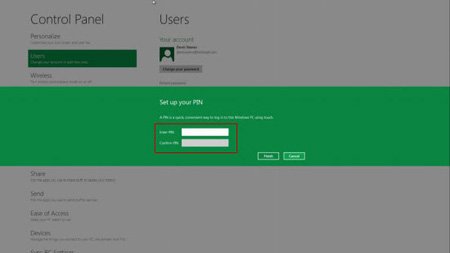 Как и пароль на картинке, другой альтернативой входа в Windows 8 является текстовый пароль, PIN-код является еще одной прекрасной функцией, появившейся в Windows 8. PIN-код представляет собой быстрый и удобный способ войти в Windows 8 ПК с помощью прикосновения. Он не требует нажатия клавиши ВВОД или нажатия кнопки Отправить. Всё что вам нужно сделать, это нажать на последнюю цифру PIN кода. Хотя ограничение до четырех цифр делает его менее безопасным, чем другие варианты паролей, PIN-код,это лучший способ для входа в систему для сенсорного совместимого устройства.