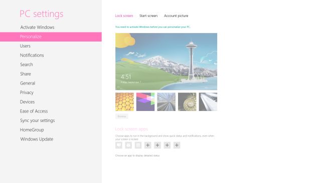 В этой статье я описываю,как ограничить доступ пользователям для изменения изображения экрана блокировки. Если вы используете Windows 8 бета-версию и два основных элемента изображения на экране блокировки с динамической иконкой для аккумулятора и сети и экрана входа, где вы вводите пароль, чтобы войти в окно.И вы можете также знать,она позволяет пользователям (администраторам и обычным пользователям),чтобы изменить фон экрана блокировки изображения.Вы также можете предотвратить изменение фонового изображения другими пользователями ПК с помощью редактора локальной групповой политики.Это действие отключит окно Персонализация>Блокировка экрана (доступ к которому осуществляется в настройках ПК).