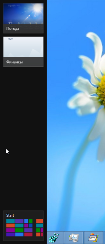 Charms Bar появляется, когда вы перемещаете указатель мыши в верхний правый угол или в нижний правый угол экрана. Switcher предоставляет простой способ для переключения между запущенными Современными Metro приложениями и рабочим столом. Как и в Charms Bar, он автоматически появляется на экране, как только вы переместите курсор мыши в левый верхний угол экрана.