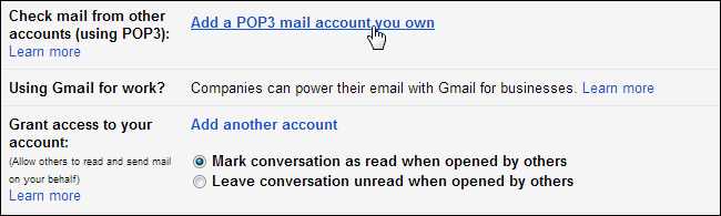 В Gmail, нажмите на Добавить POP3 учетную запись электронной почты .