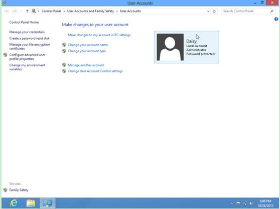 - Шаг 1: Войдите в локальную учётную запись пользователя Windows 8,для которой вы хотите создать диск сброса пароля.