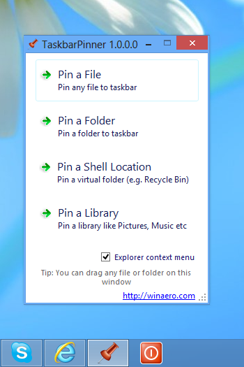 Перетащите ярлык файла в главное окно панели задач Pinnerо. Вот и все. Теперь Вы даже можете безопасно удалить команду, которую вы создали на шаге 1, так как она больше не требуется.
