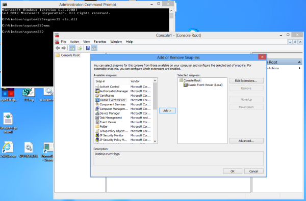 Классический случай Просмотра событий был реализован в виде ActiveX-объекта в файле c:\windows\system32\els.dll. Если вы регистрируете его, то вы получите оснастку Event Viewer для Microsoft Management Console (MMC). Следуйте инструкциям ниже, чтобы узнать, как это можно сделать.