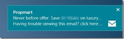 Уведомления по электронной почте,является одной из сотни новых функций,появившиеся в Windows 8.Когда важное событие происходит на вашем ПК,в верхней правой стороне экрана на несколько секунд появляются краткие сообщения уведомлений.