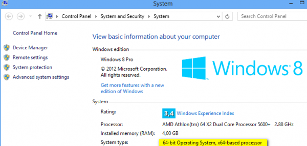Откройте Свойства Системы и проверьте,на какой версии Windows 8 вы работаете — x86 и x64. Моя x64: