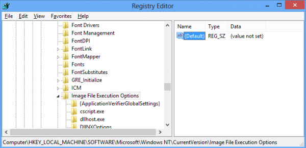 HKEY_LOCAL_MACHINESOFTWAREMicrosoftWindows NTCurrentVersionImage File Execution Options