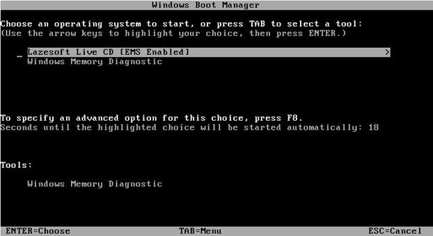 Шаг 6: Выберите опцию Lazesoft Live CD [EMS Enabled]  и нажмите клавишу Enter, чтобы начать загрузку необходимых файлов.