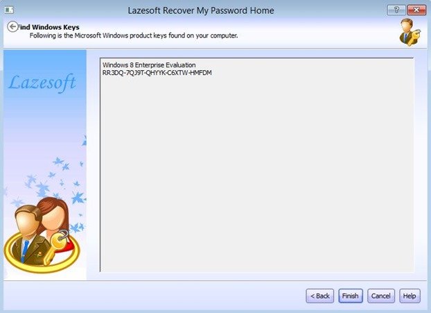 Шаг 7: В следующем окне, выберите параметр Recover Windows Product Key, а затем нажмите кнопку Next, чтобы получить ваш ключ продукта Windows 8. Запишите определённый продукт ключа на листке бумаги и храните его в безопасном месте. Нажмите кнопку Finish (Готово), чтобы перезагрузить ваш компьютер.