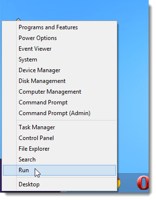 Нажмите сочетание клавиш Win+X,появится  меню. Выберите  из меню Run.