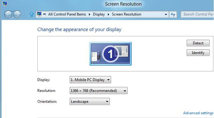 Во многих случаях я сталкивался,с тем,чтобы метро плитка на работала из-за разрешения экрана,нам нужно наше разрешение экрана на более чем 1024 × 768. Поэтому убедитесь, что у вас есть разрешение дисплея установлено с разрешением 1024 × 768. Чтобы изменить разрешение щелкните правой кнопкой мыши на рабочем столе и нажмите на разрешение экрана.