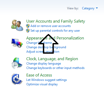 Нажмите на кнопку «Учетные записи пользователей и семейная безопасность»