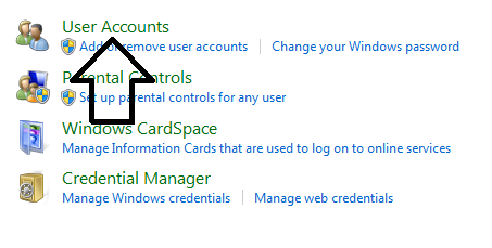 Нажмите на учетные записи пользователей