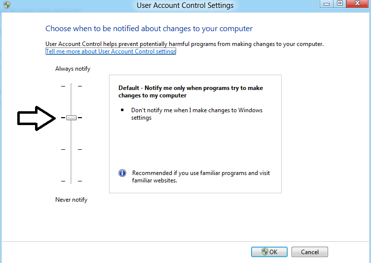 Может появится и такое сообщение,что, если UAC выключен полностью, то Метро приложения не будут работать должным образом.Поэтому убедитесь, что вы не отключили UAC. Чтобы проверить это