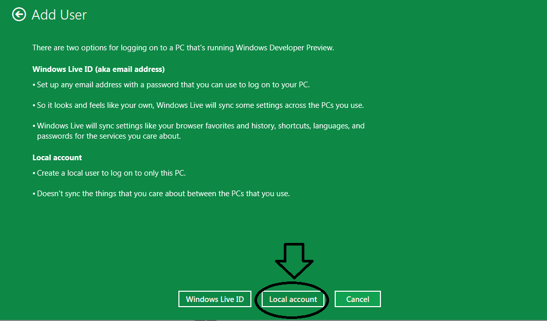 Теперь выберите  Local Account
