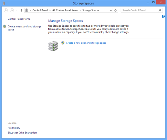 Для начала, вы должны установить один или несколько внутренних или внешних дисков к Windows 8 компьютеру и запустить складские помещения (самый простой способ получить доступ к экрану Пуск и введите Storage Spaces ).  Оттуда, создайте пул хранения и разделите его на один или несколько Storage Spaces,которые затем будут появляться и работать так же,как и любой другой диск в WindowsЕсли у вас есть два или более физических диска в компьютере,вы не потеряете ваши данные, если один (или даже два) диска потерпят неудачу.Вы также можете добавить несколько дисков в компьютер,чтобы расширить объём в любое время,делая это,есть отличный способ использовать любые старые накопители.