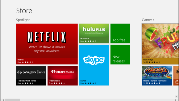 Главный разработчик Windows 8 kickoff Steven Sinofsky сказал,что Windows Store на старте и будет иметь больше приложений, чем любое другое конкурирующее app store сделанное во время их запуска.Когда я услышал замечания Sinofsky, они звучали для меня,как будто он сказал это вежливым способом : “у нас не так много приложений”. И это, кажется, именно тот случай.Другие приложения могут прийти в Интернете в ближайшие недели,но, прямо сейчас, не существует многого,чтобы получить полное использование Windows 8.Есть некоторые интересные приложения,чтобы убедиться в этом: Angry Birds Space (в настоящее время только название Rovio), Netflix, Skype, Hulu Плюс», Urbanspoon, и Xbox SmartGlass. Но самые заметные заголовки : Facebook и Twitter, Dropbox, Пандора, Rdio, и Spotify.Вы можете работать на Windows 8 app с помощью версий,построенных для Web или с традиционным рабочим столом (если вы работаете в Windows РТ). Но многие сторонние настольные приложения не трогают friendly, которые ставят запуск нового процессора Intel-таблетки, такие, как Acer Iconia Tab W700 в невыгодное положение.Если Windows 8 таблетки собираются конкурировать с iPad, Nexus 7,и Kindle Fire HD, Windows Store нужно больше приложений для современного пользовательского интерфейса, и это требует больших имён приложений,как те,о которых говорилось выше.