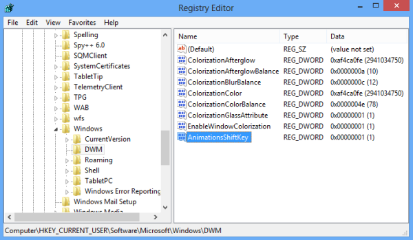 P.S. Если вы не хотите использовать Редактор реестра, есть обновлённое программное обеспечение Aero8Tuner , которая делает поддержку настройки функции AnimationsShiftKey: